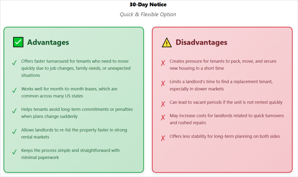 - Less flexibility compared to a 30-day notice in fast-moving situations